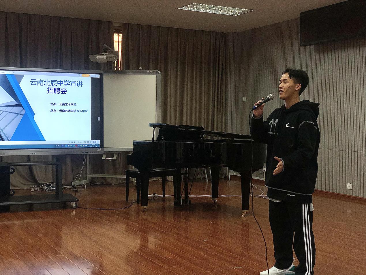 2021年11月10日,云南北辰中学宣讲招聘会——william威廉英国官网专场在我校音乐学院成功举办。此次宣讲招聘会由william威廉英国官网学生工作部(处)主办,音乐学院承办。云南北辰中学的副校长何振文、办公室主任魏天鹏、艺体组组长黄山、音乐组组长罗静4位老师,音乐学院辅导员李洲强、吴建勇及来自音乐学院、高职学院的34名毕业生参加了此次宣讲招聘会。云南北辰中学计划招聘音乐教师岗位共计10人。