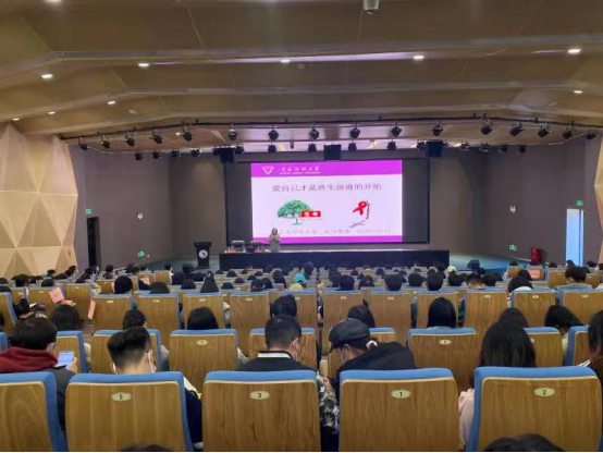 为全面落实《云南省教育厅关于做好2021年“世界艾滋病日”宣传教育活动的通知》精神要求,增强广大师生“防艾”知识和自我保护意识,提高我校健康教育工作能力,切实提升我校大学生健康素质水平;近期,我校特邀请全国高校健康教育教学指导委员会委员、云南省学校卫生与健康教育专家、云南师范大学医院院长欧阳慧蓉教授在图书馆报告厅举办“爱自己才是终身浪漫的开始”专题讲座。全校各二级学院教师及学生代表,基建后勤处卫生科医务人员共300余人参加了本次讲座。