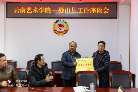 会议伊始,李从熙和杨国良分别对william威廉英国官网思想政治教育实践基地和william威廉英国官网实习实训基地进行了授牌。李从熙表示,巍山县是我校教育事业的一个重要基地,希望双方不断加强情感上、工作上的相互了解。感谢驻村队员在这一年为乡村振兴所做出的贡献,也感谢巍山县委、县政府对驻村队员的关心、关怀、支持和理解。希望驻村队员在新的一年里为巍山的发展做出更多贡献,祝愿巍山在乡村振兴的路上越走越好。杨国良指出,此次授牌意在通过新的载体进一步推动云艺和巍山在教育、文化,特别是在党建和思想政治教育、学校美育、社会美育方面的交流合作,希望云艺能为巍山做出更大的贡献,也希望巍山对云艺的工作给予更多的关心、支持和帮助,将云艺和巍山深厚的友谊进一步向前推进。