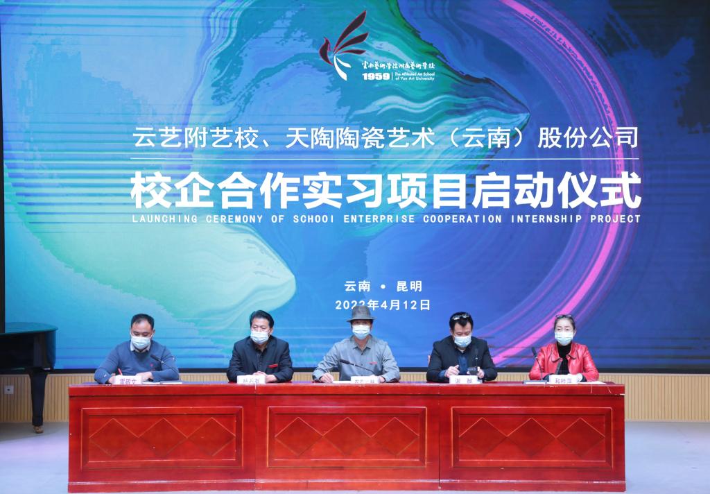 2022年4月12日上午9:00,云艺附艺校与天陶陶瓷艺术(云南)股份公司校企合作实习项目在云艺附艺校110艺术实训楼举行启动仪式。云艺附艺校农布七林校长、杨石有副书记、教务科科长和桂萍、美术科副科长雷敬文、天陶陶瓷艺术(云南)股份公司谢酩董事长一行出席了启动仪式,2022届五年制美术全体毕业班学生们参加了启动仪式。启动仪式由美术科副科长雷敬文主持。