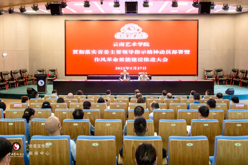 为深入贯彻落实省委主要领导对学校工作的指示精神,扎实推进作风革命效能建设,2022 年 5 月 27 日,我校在图书馆报告厅召开全校贯彻落实省委主要领导指示精神动员部署暨作风革命效能建设推进会。学校严格落实疫情防控工作要求,党政领导班子成员、副处以上干部、各教学单位骨干教师代表参加会议。会议由党委副书记、院长郭浩主持。