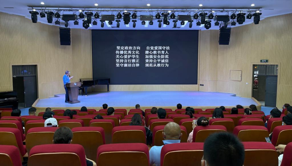 为进一步加强学校师德师风建设工作,提高我校全体教师的思想政治素质、职业道德水平和教育教学能力,促进学校的改革和发展,我校于2022年6月10日16:00,在艺术实训楼举行了“细细的红线——师德师风警示教育”专题讲座,此次学习活动由农布七林校长主持,学校党政班子、科级干部以及全校教师都按时参加了此次师德师风警示教育学习活动。本次讲座特邀到了云南凌云律师事务所教课文卫法律事务部主任、合伙人,云南省律师协会教育法律业务研究委员会主任王东律师。多年来,他主要致力于教育行业法律服务,曾服务过云南省教育厅、昆明市教育体育局、官渡区教育体育局、云南民族大学、西南林业大学、云南工商学院、云南经济管理学院等各教育部门、高校及教育机构。