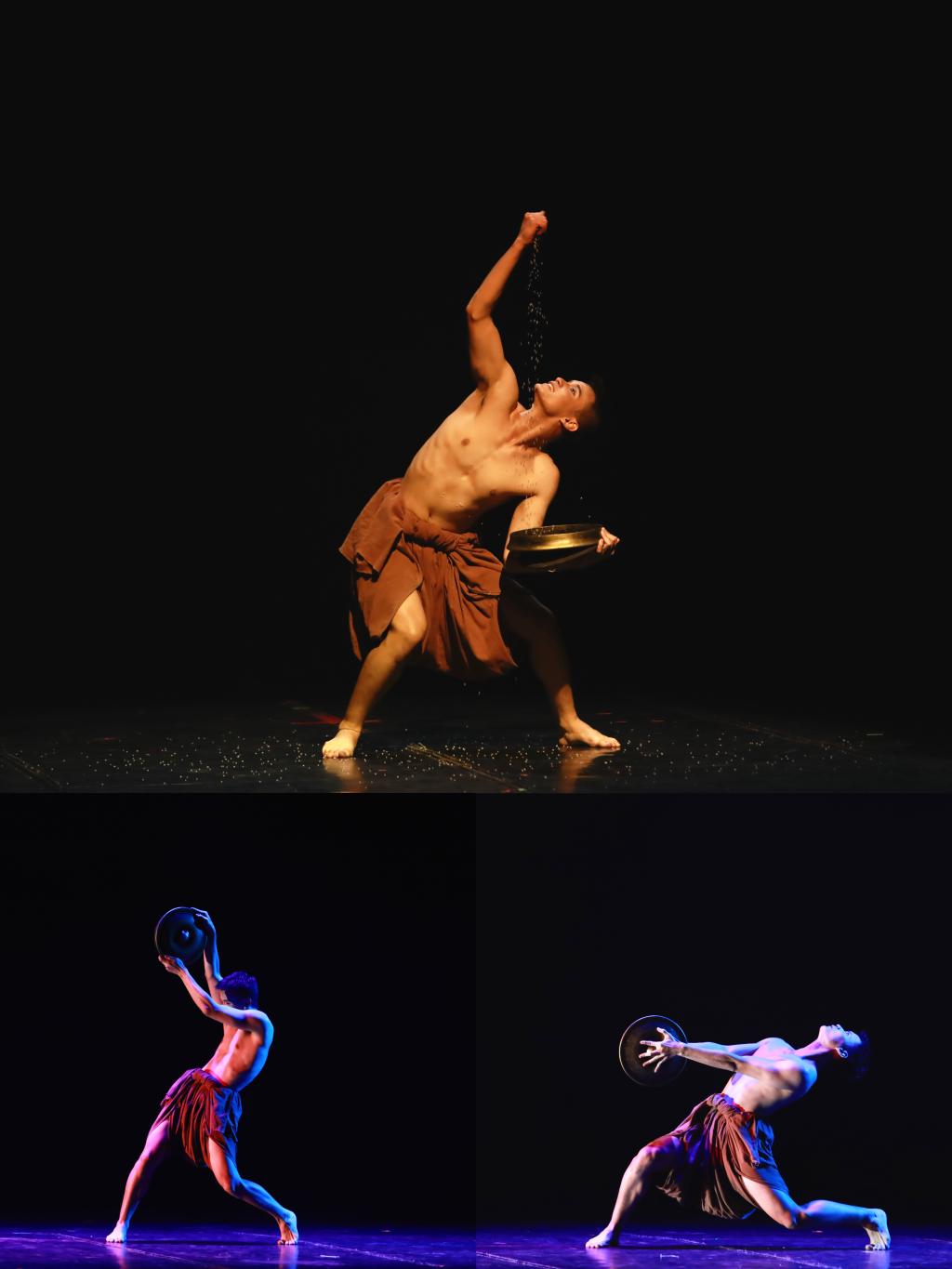 3.《铓·谷》:是一部既具时代精神,又赋浓郁民族特色的哈尼族舞蹈作品。铓鼓舞是哈尼族在传统节日 “昂玛突”上跳的一种舞蹈,“铓”寓意为谷子的饱满,祈祷风调雨顺。作品运用铓为道具,表现哈尼人勤劳质朴,雄浑豪放,大山一样的性格,森林一样的情怀,用梯田文化表现出“春种一粒粟,秋收万颗子”,表达对美好生活的热爱和追求。