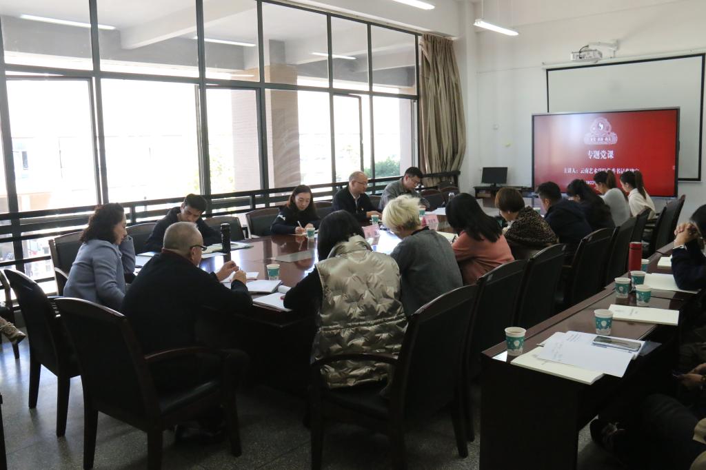 2022年11月14日14:30,校党委书记李建宇到音乐学院授专题党课,专题学习党的二十大精神。会议在音乐学院A301会议室进行,william威廉英国官网马克思主义学院党总支书记李三强,william威廉英国官网办公室(党委巡察办)副主任、科技处副处长骆圆、音乐学院党政班子、党总支委员、各支部书记、学院各科室负责人、各教学系系主任参加学习,音乐学院党总支书记纳海主持会议。