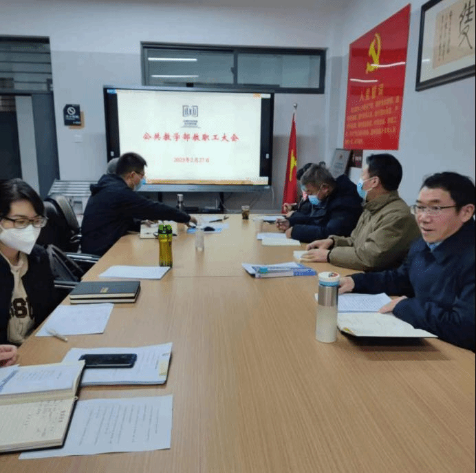 2023年2月27日,公共教学部召开教职工大会,传达学院会议精神,安排部署新学期和2023年工作。公共教学部全体教职工参加会议。