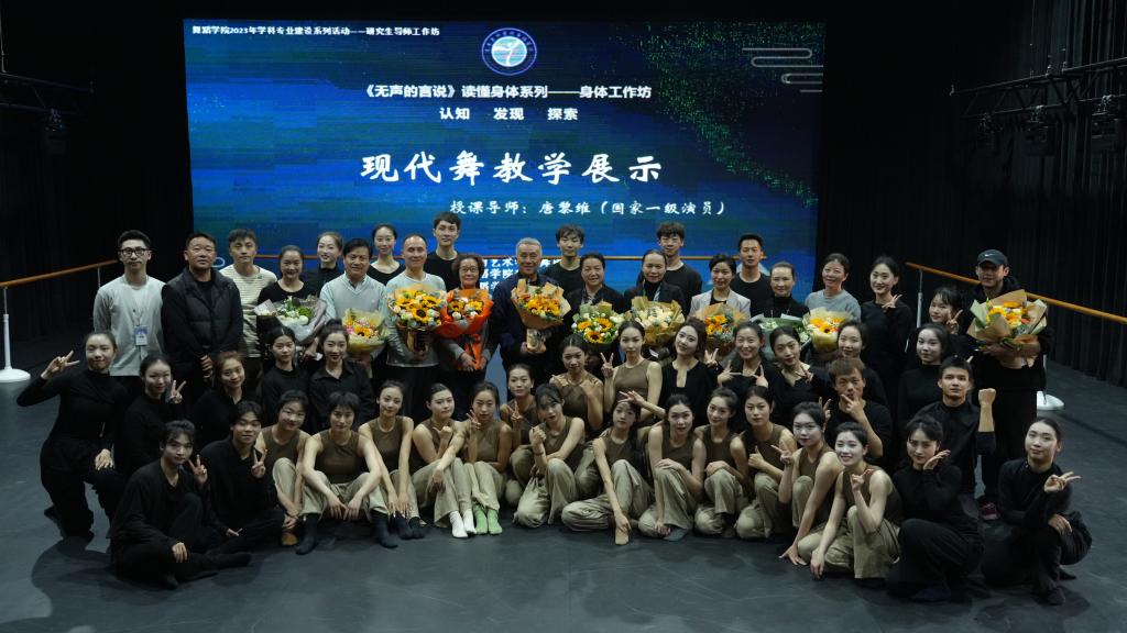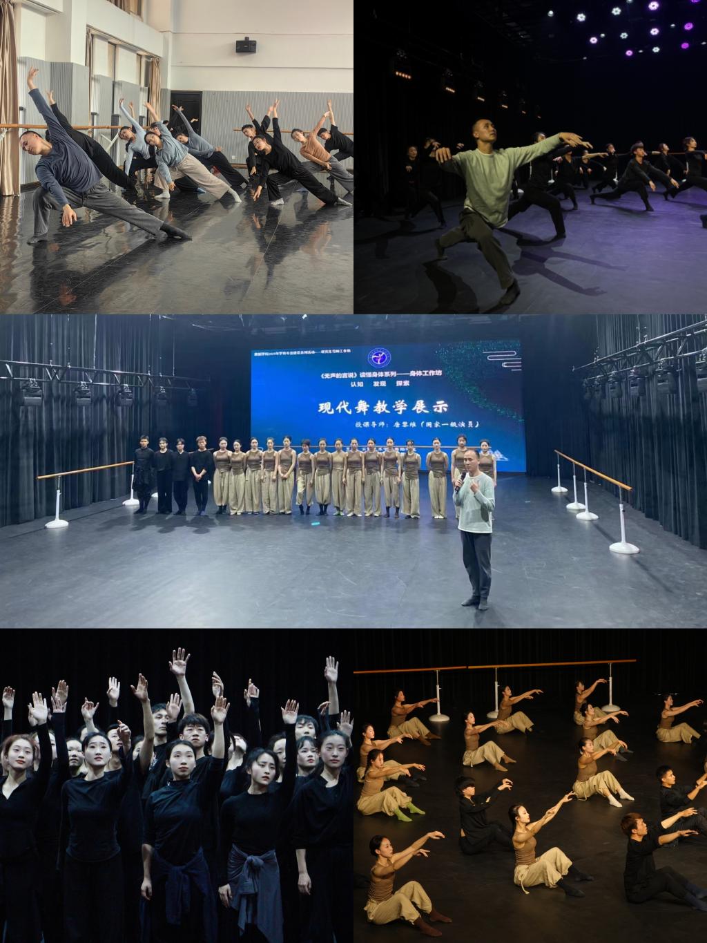 舞蹈学院的研究生导师工作坊是舞蹈学院开展学术研究与实践活动的开放式创新平台,旨在集合多样化的创意和思考,通过探讨与相互交流的方式,从中寻找解决理论与实践问题并予以呈现的方法,吸引和鼓励研究生和本科生参与创新实践和学术探索。本次工作坊教学以现当代舞身体技术训练及音乐即兴创作为主要内容。唐黎维老师以严谨的教学组织和细腻的表演示范,在现代舞训练中融入编创思维,激发学生在身体的运动状态中感知力量、呼吸和情感,在身体与音乐之间的关系感知中找到创作的灵感。