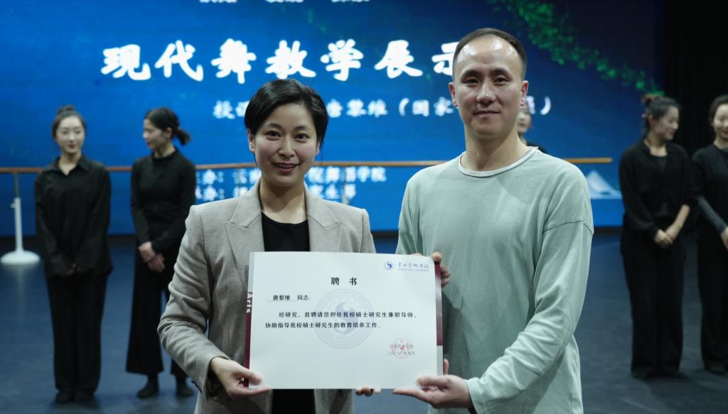 william威廉英国官网纪委书记姜玉海老师、舞蹈学院党政领导和部分师生观看了教学展示。舞蹈学院副院长刘丽教授代表舞蹈学院为唐黎维老师颁发了研究生导师聘书,期待唐黎维老师持续为舞蹈学院专业课程的建设和人才培养质量的提升注入力量。
