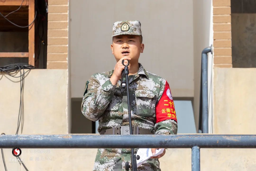 艺术管理学院2021级学生王玺代表全体参训同学郑重承诺:服从命令,听从指挥;勤学苦练,磨炼意志;巩固成果,发扬作风。