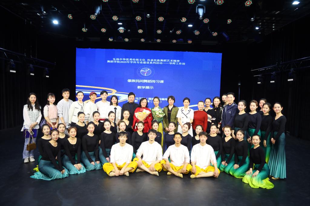 此次教授的傣族民间舞蹈传习教材是马文静老师依据个人多年的艺术实践经历所建构的民族舞蹈风格性教材,其中融汇了民间舞蹈大师毛相以及瑞板、莫恩帅、向真等傣族民间艺人极具代表性的动作语汇,具有极强的民族风格与地域特色。同时,在将这些民间原生形态向课堂次生形态转换的过程中,马文静老师结合自身丰富的舞蹈创作经验,富有创意性地将原生语汇进行艺术性的转化,形成符合教育逻辑的课堂次生教材。