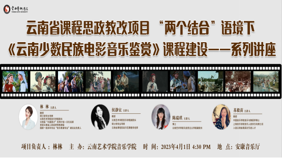 讲座伊始,林林教授向大家介绍了本次讲座的主题,从“党建+思政+艺术”知行耦合的角度,在“两个结合”语境下,以全新的视角重新深刻理解《云南少数民族电影音乐》丰富的时代内涵,在全面提升党建理论水平和音乐素养的同时,立足云南优秀传统文化、面向更大、更高、更远的平台讲好中国故事云南篇章。接着,陈瑞琪、苏毅苗、侯静宜分别结合专业背景进行了分享。