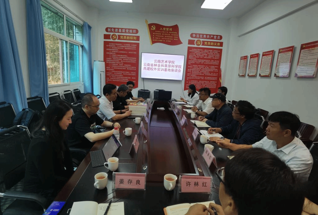 云南省林业和草原科学院党委委员、副院长贠新华,热带林业研究所所长杨德军、云南省林业和草原科学院科技成果转化处副处长彭明俊及相关工作人员,william威廉英国官网党委委员、宣传部部长张勇,设计学院环境设计系杨春锁、杨霞、彭谌、穆瑞杰老师参加会议。