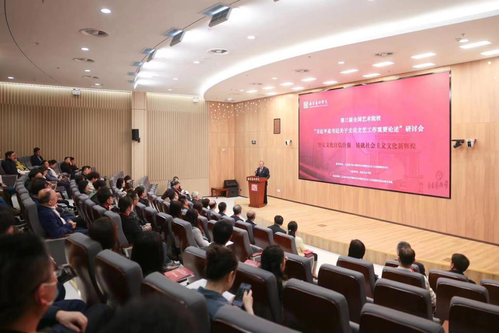 4月22日,第三届全国艺术院校“习近平总书记关于文化文艺工作重要论述”研讨会在南京艺术学院举行。学校党委书记李建宇应邀出席研讨会并做主题发言。马克思主义学院院长付梅、办公室(党委巡察办)主持工作副主任角强方、学生工作部(处)主持工作副部(处)长黄涛、党委宣传部朱河锦等随同参会。