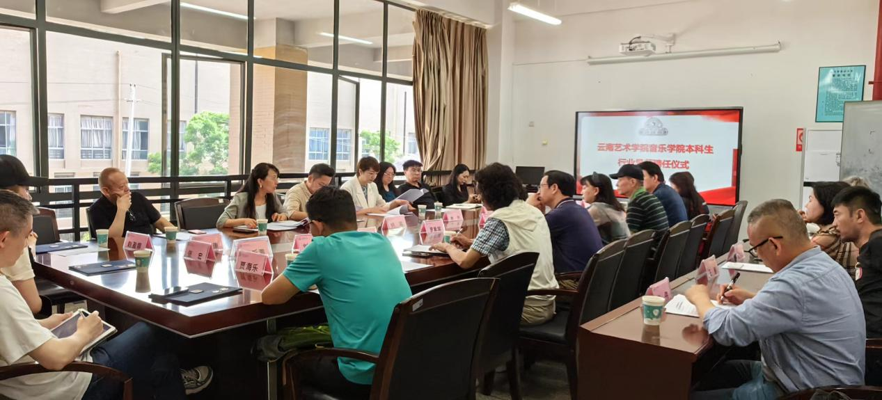 为提高音乐学院应用型人才培养质量,推进产教融合、校企合作,深化协同育人长效机制,提升实践育人能力,音乐学院于2023年5月8日、9日在学院A301会议室举行本科生行业导师聘任仪式,本次共聘任17位行业专家担任音乐学院本科生校外导师。音乐学院党总支书记纳海、院长林林、副院长侯静宜、教学管理科科长王虹、办公室主任段燕萍、各教学系系主任以及行业导师出席此次仪式。聘任仪式由侯静宜副院长主持。