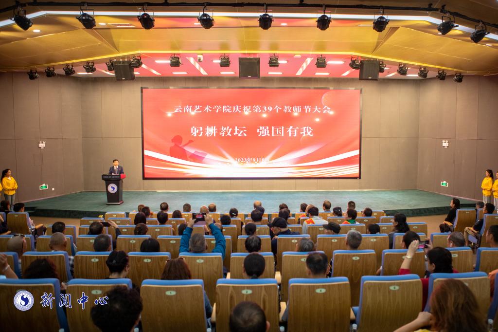 学校党委书记李建宇在大会上讲话。李建宇首先代表学校党委和行政向为学校发展倾注汗水、智慧和心血的全体教职工致以节日的问候和衷心的感谢,向全体离退休老师和老前辈们致以崇高的敬意,向从教30年以上、为党的教育事业兢兢业业、无私奉献的教师们表示诚挚的祝福,向新加入云艺大家庭的青年教师们表示热烈的欢迎。
