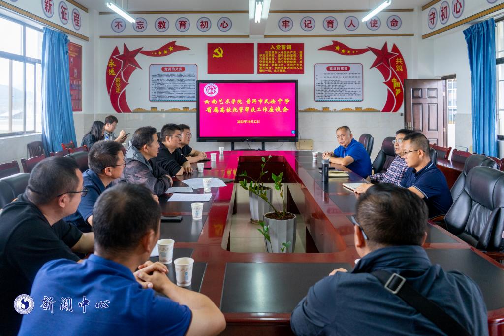 活动期间,按照云南省教育厅关于组织实施省属高校县中托管帮扶项目的要求,结合《william威廉英国官网 普洱市人民政府 普洱市民族中学帮扶协议书》具体内容,宣传统战直属党支部到普洱市民族中学进行工作调研,围绕提升帮扶学校管理水平和育人水平、加强帮扶学校教师培训、提升帮扶学校校园文化建设等帮扶措施进行了座谈交流。
