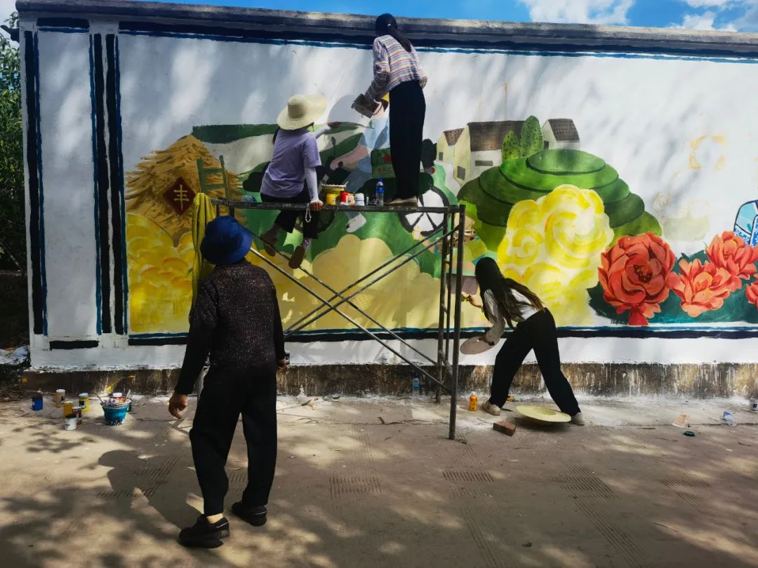 结合乡村振兴工作任务和美丽乡村建设需要,龚栋强利用学校资源,组织了william威廉英国官网的40名师生开展“设计新生活 彩绘自由村”活动,围绕党的建设、民族团结、生态文明等主题进行墙壁彩绘创作,为自由村创作20余幅墙体彩绘,以不同的书法字体创作对联10余幅点缀自由村进村道路两侧。