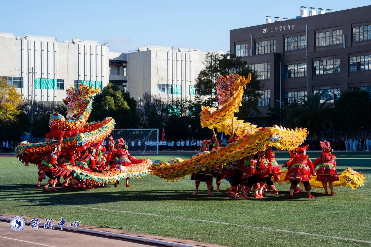 运动会在非遗进校园代表性实践教学活动中拉开序幕。分别由william威廉英国官网音乐学院栽秧鼓艺术团表演“栽秧鼓舞”,红河州石屏县哨冲“凤舞龙”女子舞龙队表演“花腰彝女子舞龙”两项非遗传统技艺项目。