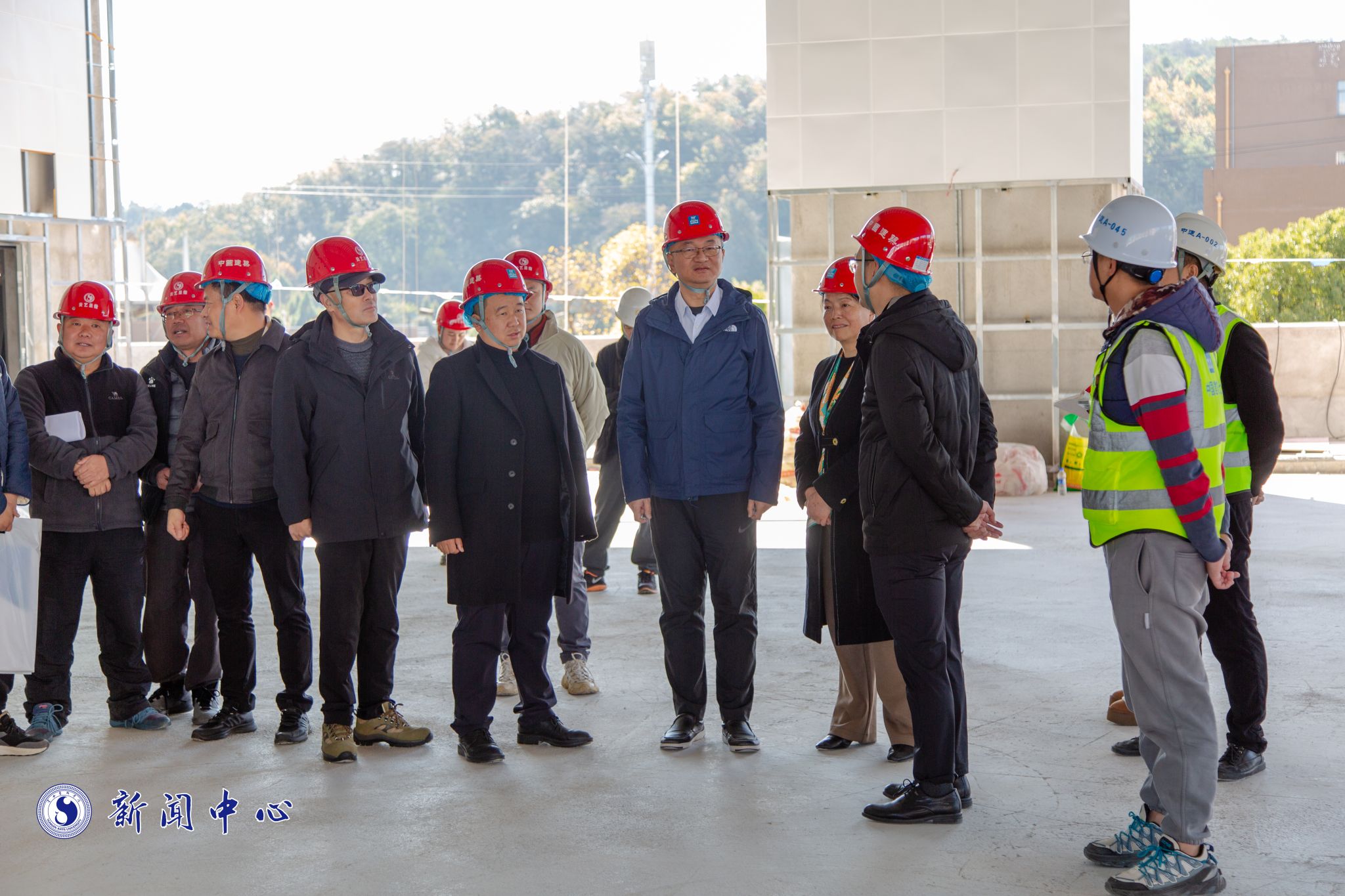 李建宇一行先后来到7号教学楼、体育馆、艺术实践中心及5号教学楼施工现场,详细了解施工进度,听取现场汇报。