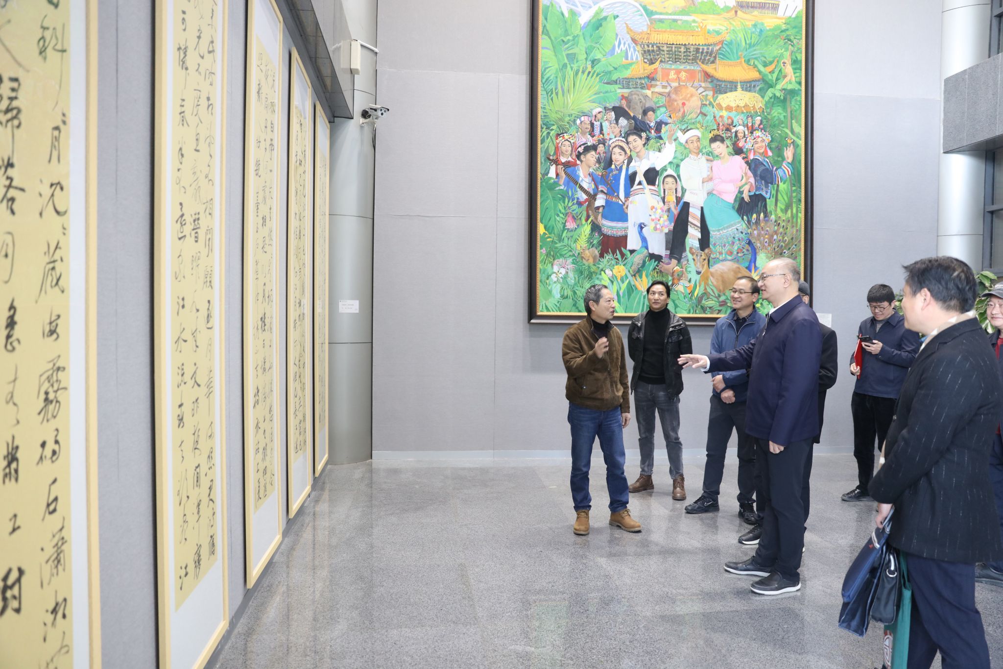 两位教授现场回忆了在云艺学习和工作的历程,分享了此次艺术作品创作的灵感、感悟以及对学校培养的感激之情。孙建东教授捐赠了《春华秋实 桃李芬芳》和《锦上添花 盛世华章》两幅国画。陈鸿翎教授捐赠了五条屏书法作品《春江花月夜》。此次捐赠不仅为青年学子树立了爱校荣校的榜样,也通过精品力作蕴含的深情厚谊,预示着学校发展的艺韵绵延,华彩不断。两位教授的作品不仅展现了精湛的艺术造诣,更蕴含着对母校艺术教育事业蓬勃发展的美好期许。