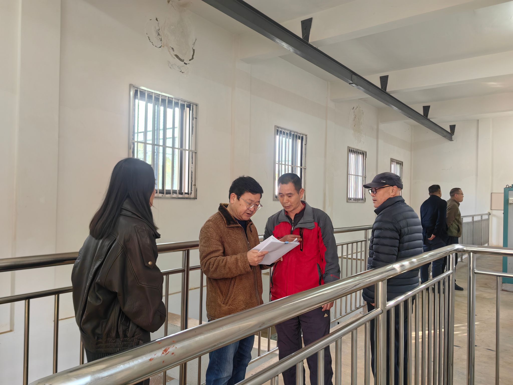 欧阳俊虎院长一行查看水泵房的日常巡查记录