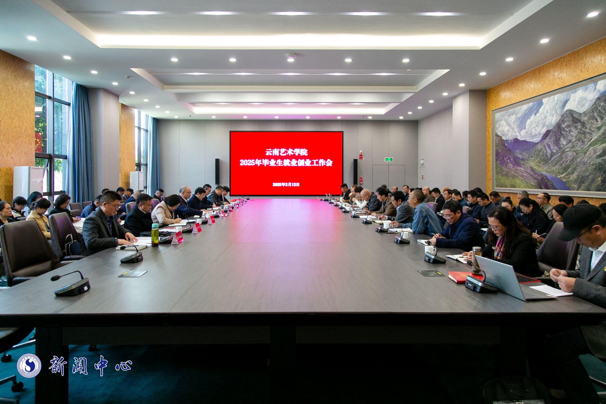 会上,党委委员、副院长蒋锋通报了2024届和2025届毕业生就业数据,对2024届毕业生就业创业工作进行总结。影视学院、美术学院、艺管学院、音乐学院分别就推进落实2025届毕业生就业作交流发言。