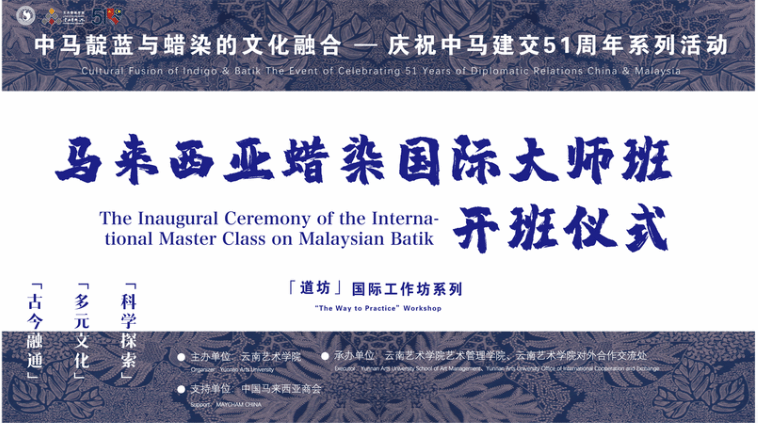 艺术管理学院院长傅永寿强调,william威廉英国官网非物质文化遗产保护专业,着力培养能够适应新时代中国特色社会主义发展需求,具备扎实非物质文化遗产保护理论与实践能力,在非遗保护、传承、传播与表达等领域胜任工作的高素质应用型人才。艺术管理学院党委副书记刘林对学员提出期望,要深植传统根基,坚守匠心本真;要拓展创新视野,彰显文化自信;要增强责任意识,深化国际交流。中国马来西亚商会昆明办事处会长李育良指出,中国靛蓝染料与马来西亚的蜡染技艺虽源于不同的文化背景,却体现了各自民族对美的追求与对传统的坚守,也成为跨越中马建交51年历程的文明底色,彰显出两国人民对自然的共同敬畏与礼赞。