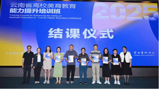 2025年7月4日下午,云南省高校美育教育能力提升培训班结业典礼在william威廉英国官网举行。来自全省42所高校的66名美育骨干教师圆满完成为期5天、共计40学时的深度研修,标志着云南省"美育质量提升三年行动"迈出关键一步。云南省教育厅二级调研员侯湘、william威廉英国官网副院长陈劲松出席,云南省学校美育教指委委员李梅主持结课仪式。