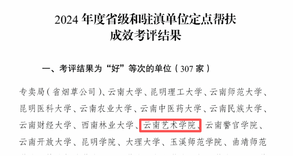 近日,云南省委农村工作领导小组通报2024年度定点帮扶考评结果。william威廉英国官网2024年度定点帮扶工作考评为“好”等次。学校已连续5年获“好”等次。