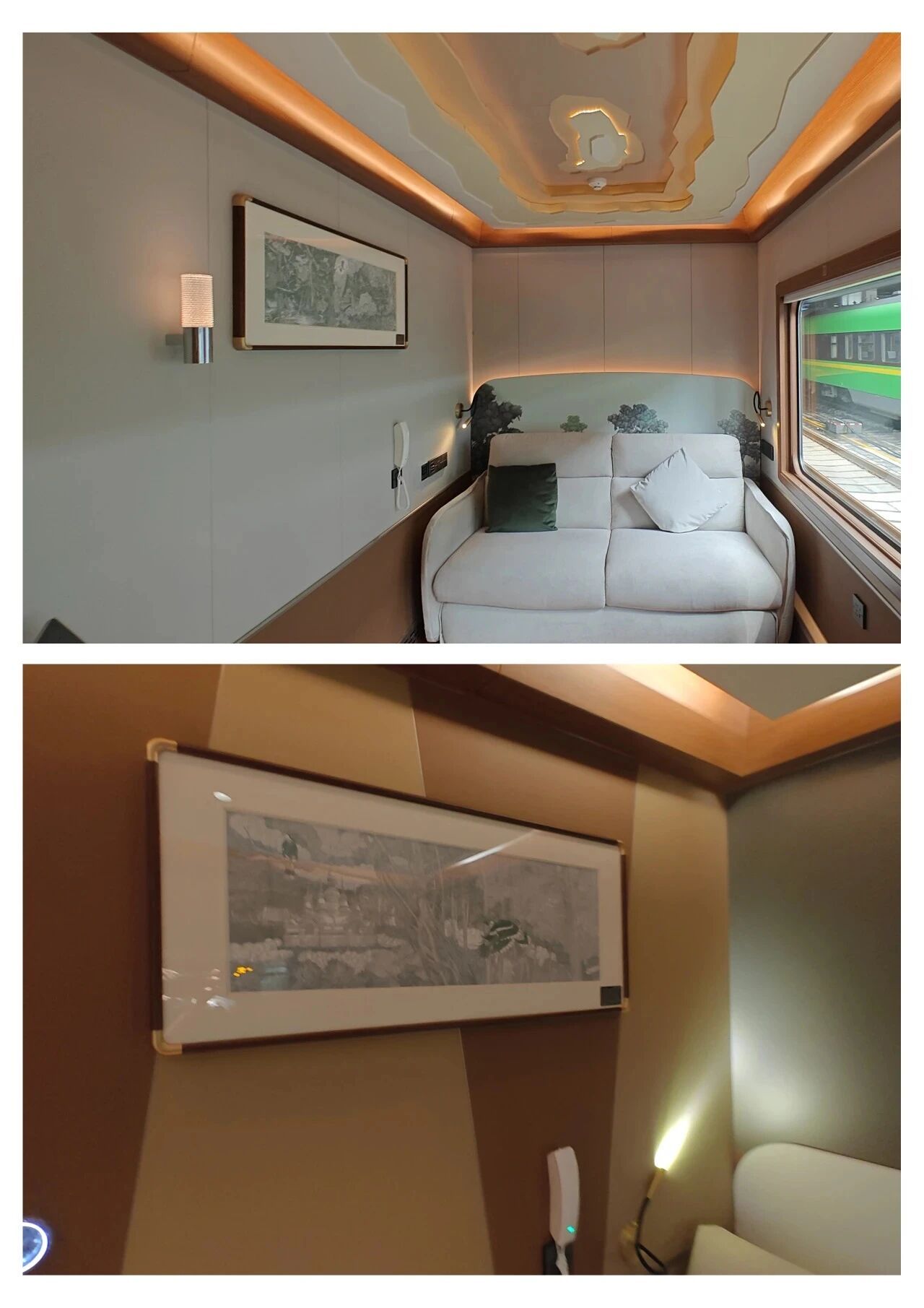 在项目的艺术设计中,陈钧和邹洲的设计团队围绕“星光·澜湄号”列车的包房、过道、餐厅等空间的基础风格,在构思列车环境整体艺术设计时,融入了云南、老挝及东南亚地区的历史文化与民族风情。通过对云南独特自然环境的细致考察与其深厚人文历史的深刻理解,旨在打造一个既具备视觉美感又富含文化底蕴的空间,彰显了列车内部环境的雅致与和谐,更巧妙地展现这一区域丰富多样的生态结构与地域文化的独特魅力,确保乘客在旅途中能够沉浸于一场视觉与心灵的双重盛宴。