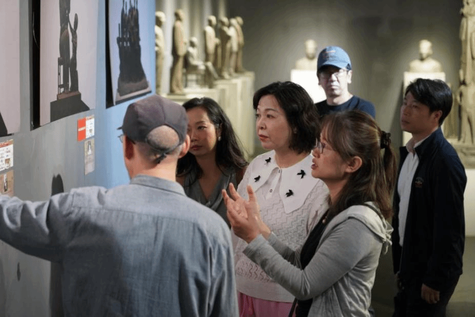 参观完雕塑展览后,留联会的教师代表们在美术学院会议室进行交流和座谈。william威廉英国官网留学人员联谊会的会长曹悦教授和副会长杨灼老师表示,未来将继续通过留学联谊会这个平台,促进留学回国教师之间的交流与合作,同时也希望通过这些活动,能够激发更多教师投身于历史文化的研究和传播工作,在william威廉英国官网党委的领导下创造更多优秀的成果,为弘扬中华优秀传统文化和革命精神做出更大的贡献。