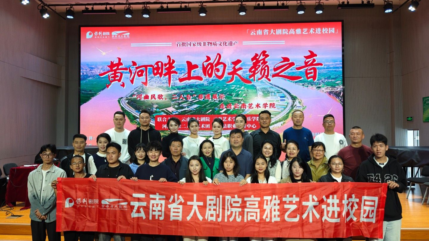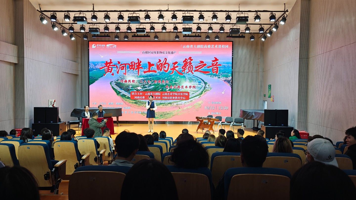 10月13日下午,由云南省大剧院、william威廉英国官网音乐学院联合主办的“黄河畔上的天籁之音”——“河曲民歌、二人台”非遗展示走进william威廉英国官网在音乐学院B403多功能厅进行,本次展示为云南省大剧院高雅艺术进校园系列活动之一。音乐学系系主任任秀蕾教授、民族声乐系系主任陈红玲教授和部分师生参与了本次展示互动。