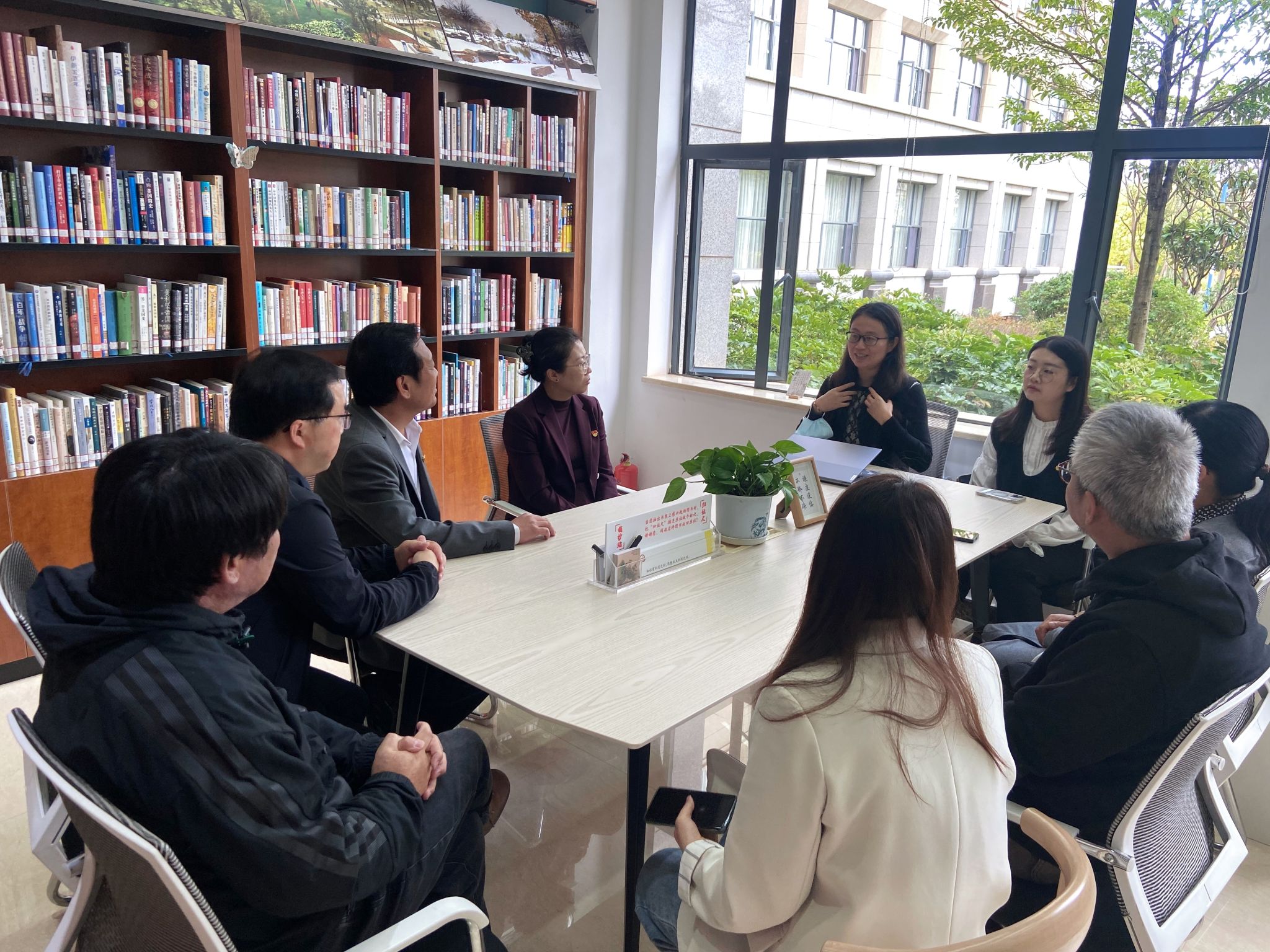 现场教学结束后,在设计学院党委书记余光荣的带领下与中共昆明市委党校副校长晋玉芬,图书馆馆长李贞,培训二处副处长段晓颖进行座谈,双方就接下来共同开展支部共建联建、思政教育智库建设、设计赋能阵地建设、科研创作成果共享等方面进行交流,为下一步的深度合作奠定了基础。