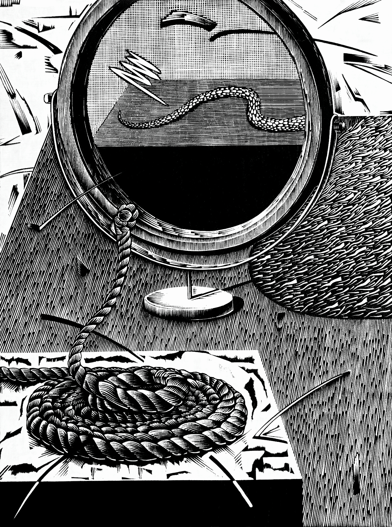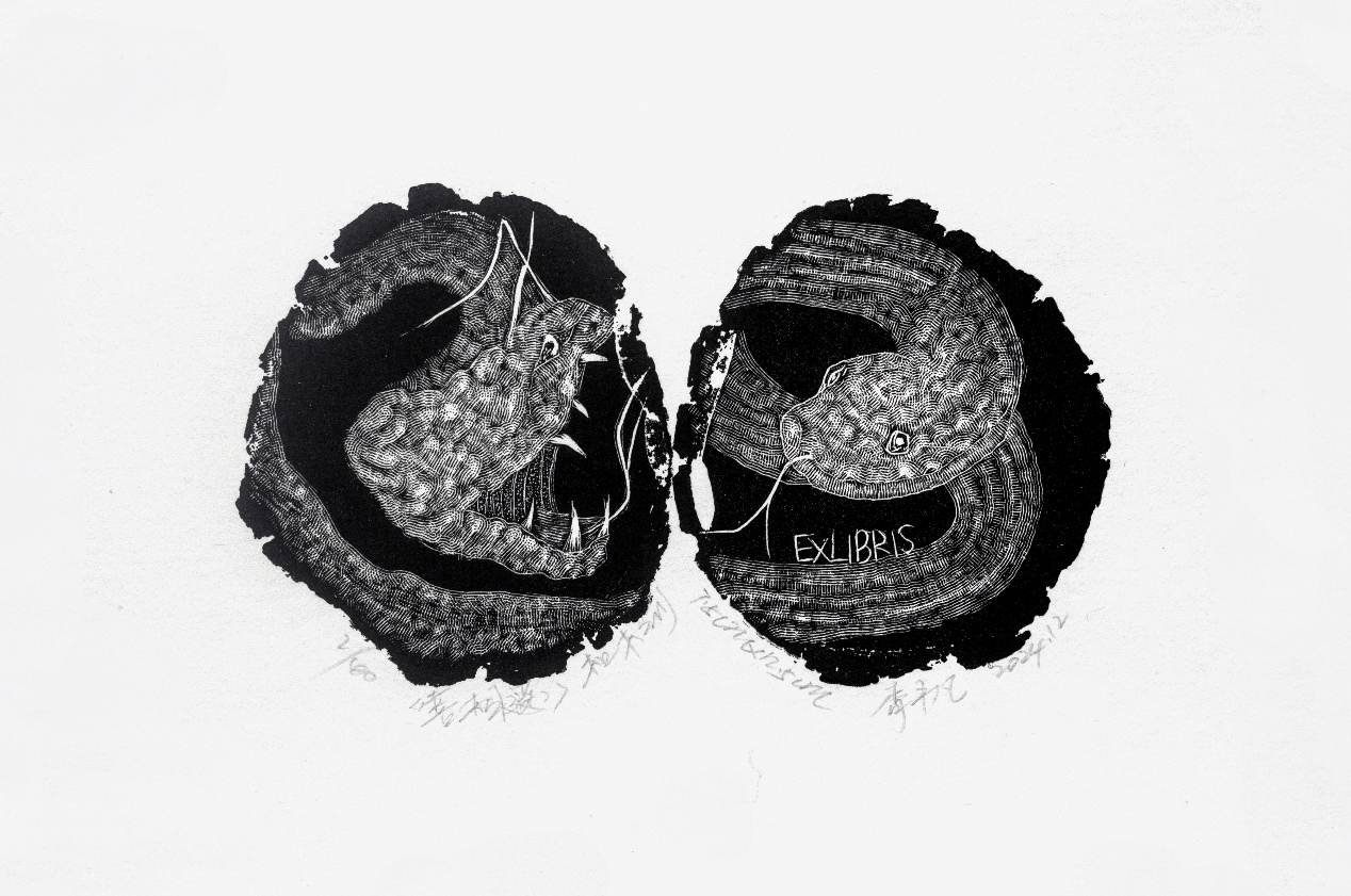 《瑞蛇图》 木口木刻 18×19CM 郝悦羽 2024年