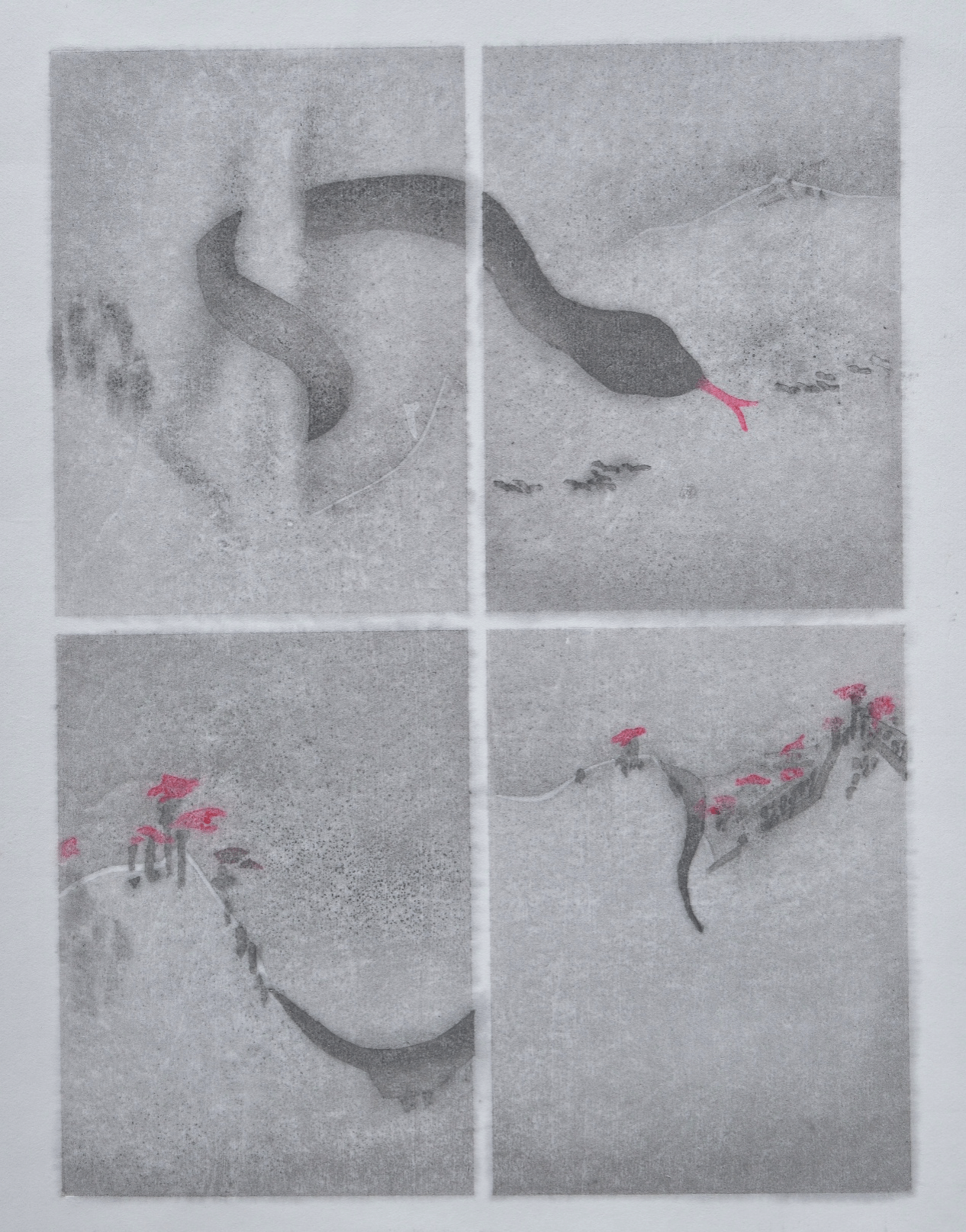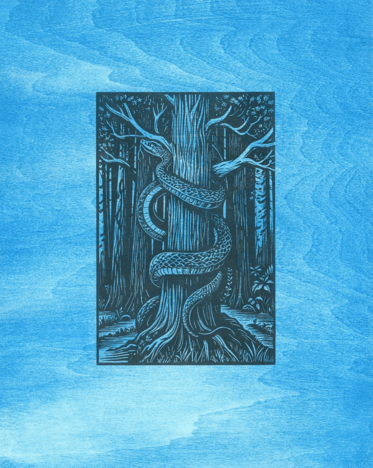 《蛇隐》 水印木刻 22×29CM 李靖昆 2024年