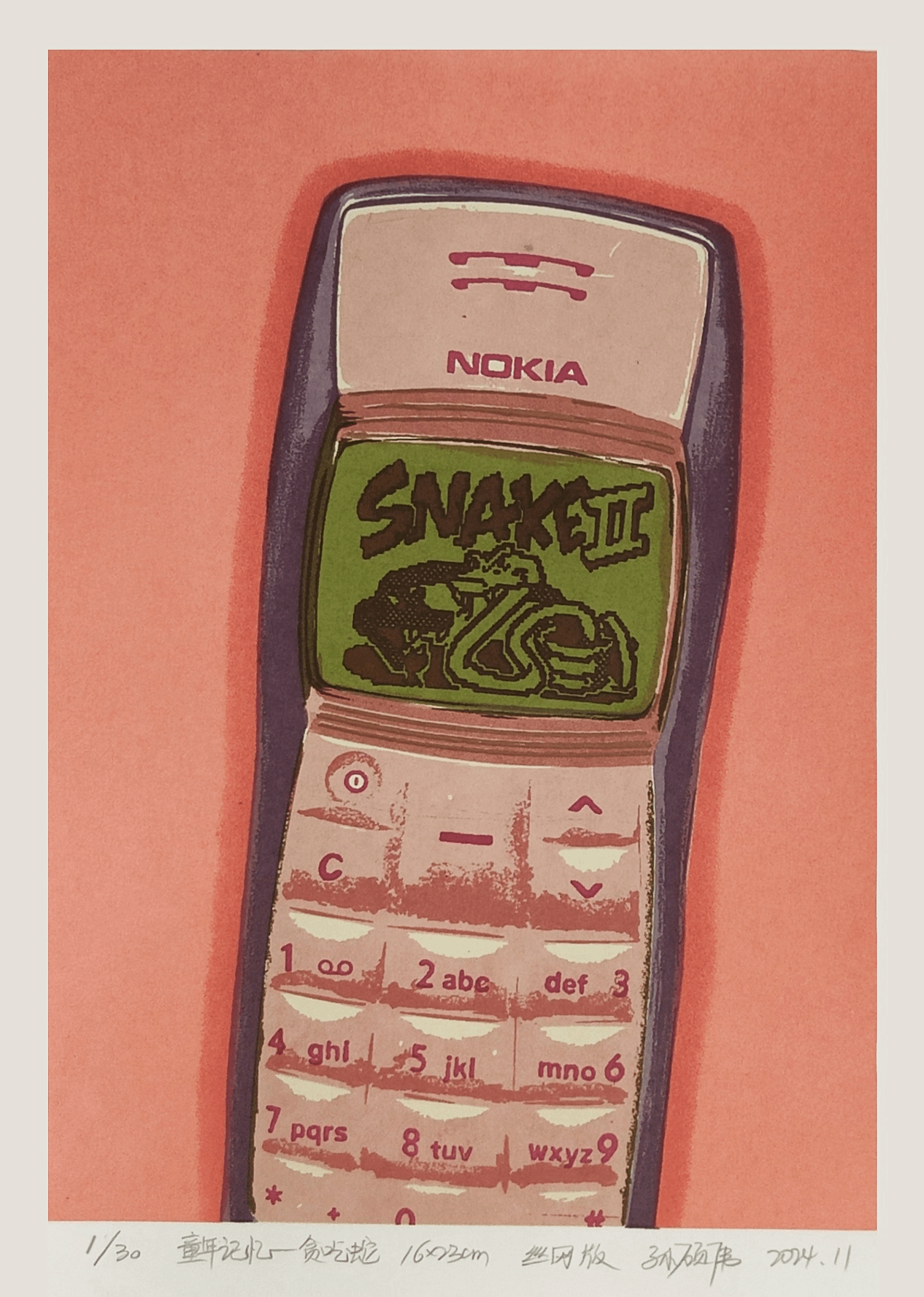 《童年记忆——贪吃蛇》 丝网 16×23CM 孙硕伟 2024年