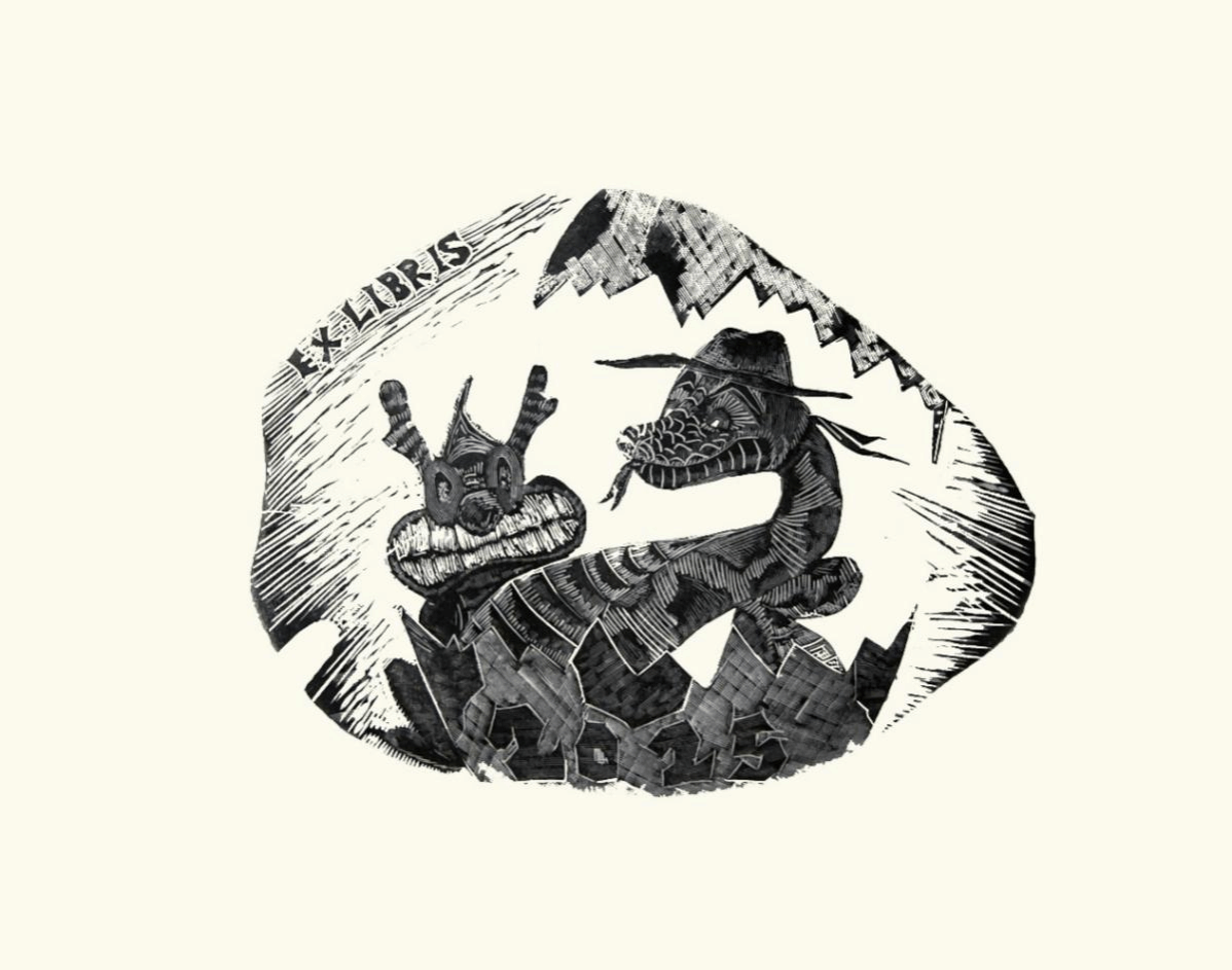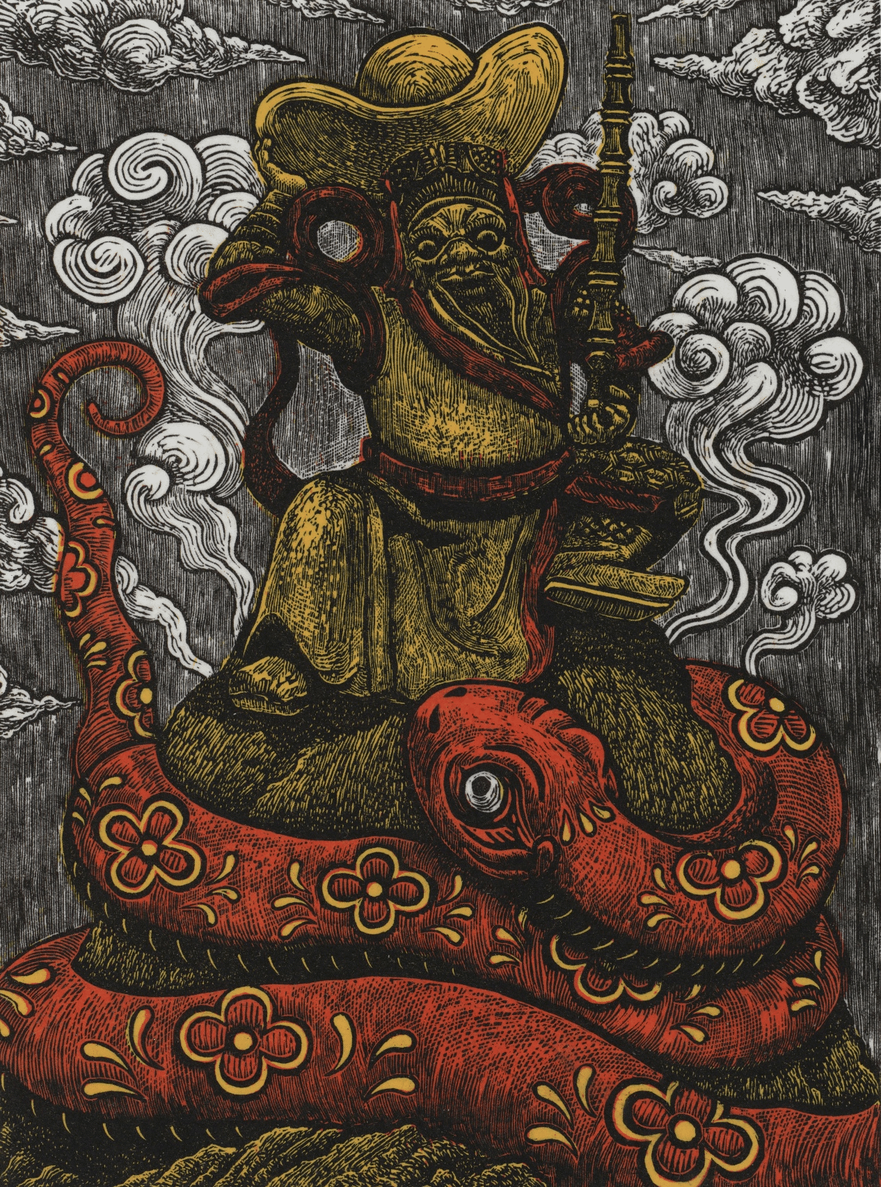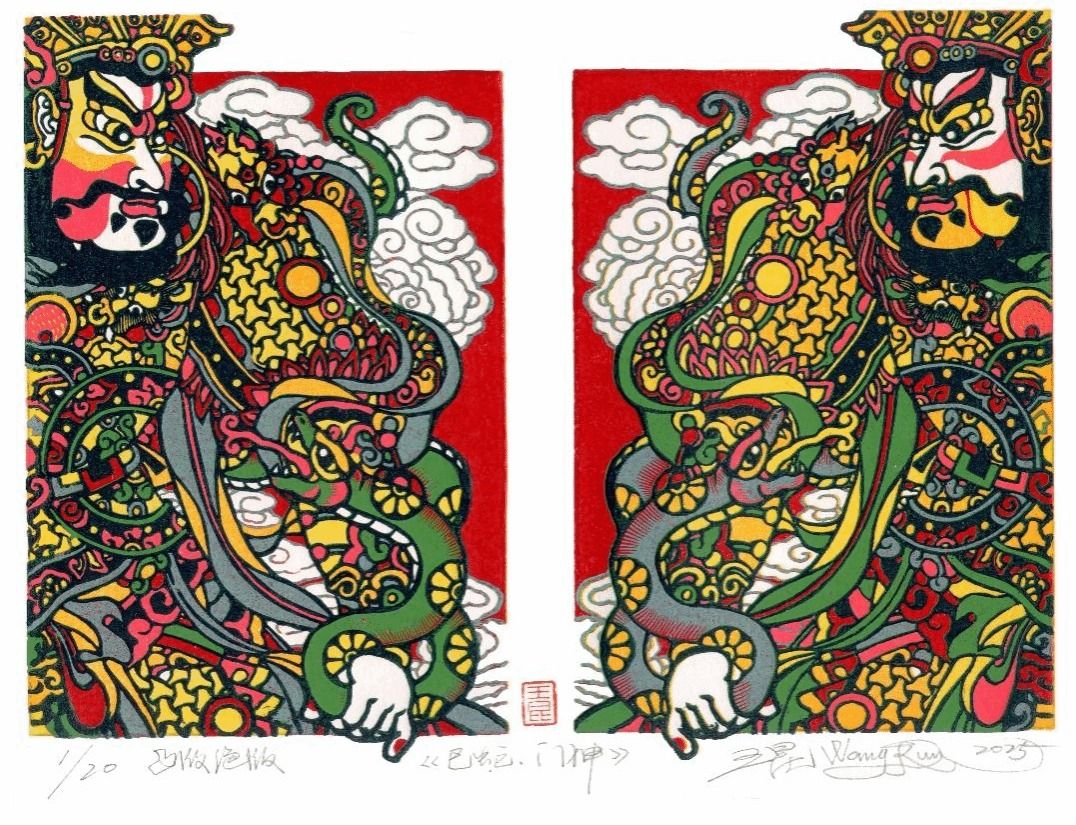 《巳蛇·门神》 绝版套色木刻 19×27CM 王昆 2024