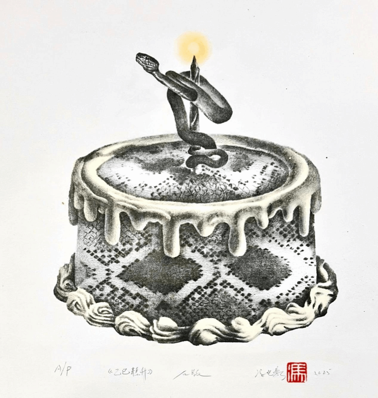 《乙巳糕升》 石版 16x16cm 冯世豪 2024年