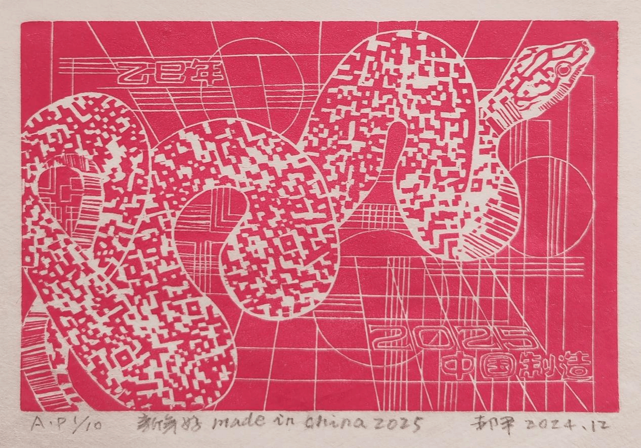 《新年好 made in china 2025》木版 17×11CM 郝平 2024年
