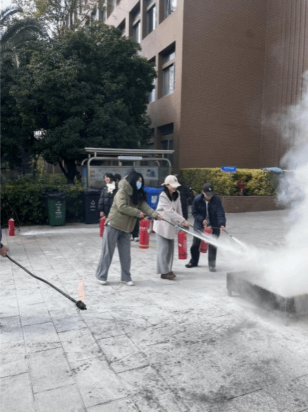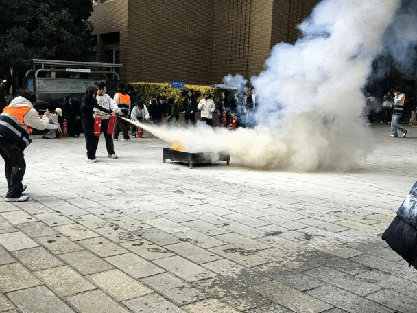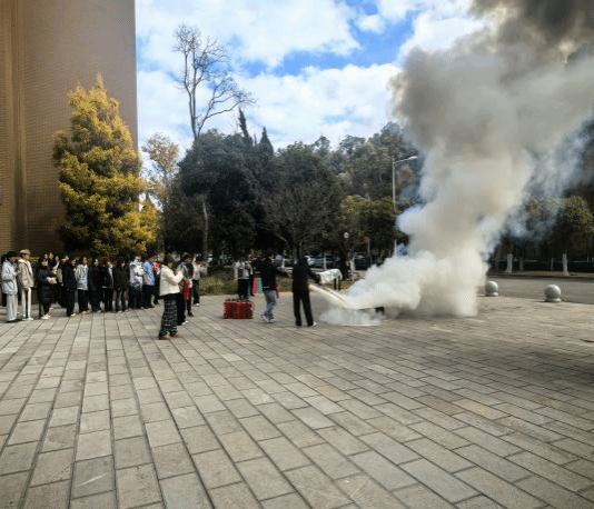 12月18日下午,诚邀校保卫处防火科老师带领同学们进行了消防演练。在演练现场,防火科普红全老师向同学们详细介绍了灭火器的种类、使用方法和注意事项,并现场演示了如何正确使用灭火器扑灭火焰。同学们在老师的指导下,纷纷拿起灭火器,亲自体验整个灭火过程。