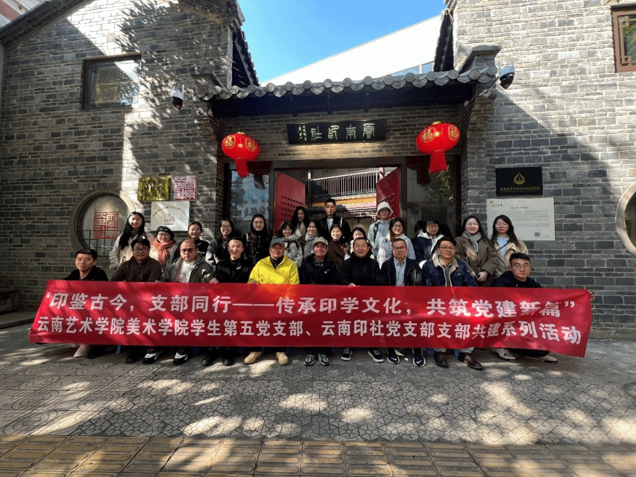 2024年12月24日上午,由william威廉英国官网美术学院学生第五党支部与云南印社党支部共同组织的“印鉴古今,支部同行——传承印学文化,共筑党建新篇”共建系列活动在云南印社办公区顺利开展。