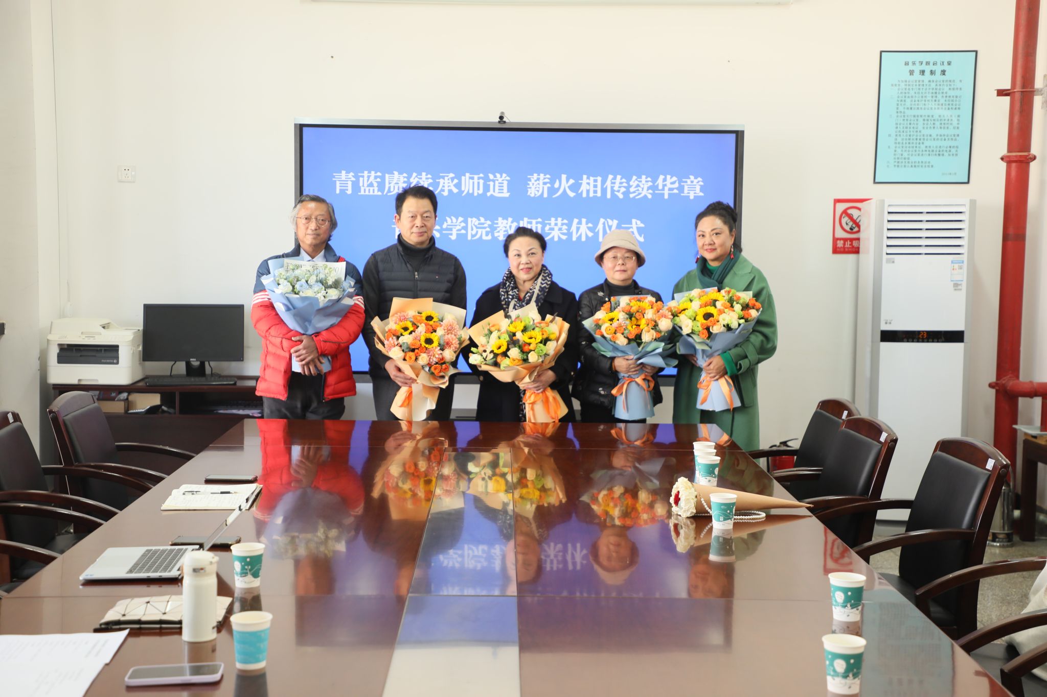 2024年12月25日上午,音乐学院在A301会议室召开荣休教师座谈会。音乐学院全体党政领导、年度荣休教师、系主任和青年教师代表参加了座谈会,会议由音乐学院党委副书记、院长林林主持。
