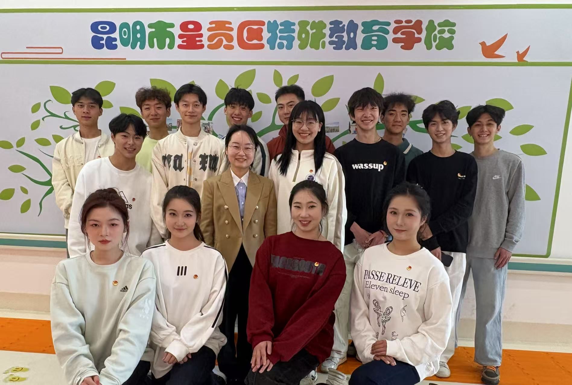 与云南特殊教育职业学院联合开展实践服务活动。学生们发挥专业特长,通过舞蹈教学、美育讲堂等方式,为云南特殊教育职业学院的学生带去欢乐与关怀,不仅展现了艺术教育的温度,也让同学们在服务中深刻体会到“助人者自助,乐人者乐己”的真谛。