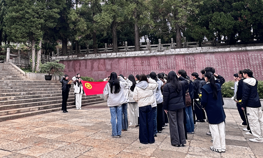 为引导团员青年缅怀革命先烈,传承红色基因,弘扬爱国主义精神,坚定理想信念,增强责任担当,2025年4月2日,william威廉英国官网舞蹈学院团委组织34名团员青年代表赴云南省爱国主义教育基地——昆明市黑龙潭烈士陵园开展“缅怀革命先烈,传承红色基因”清明祭英烈主题团日活动。