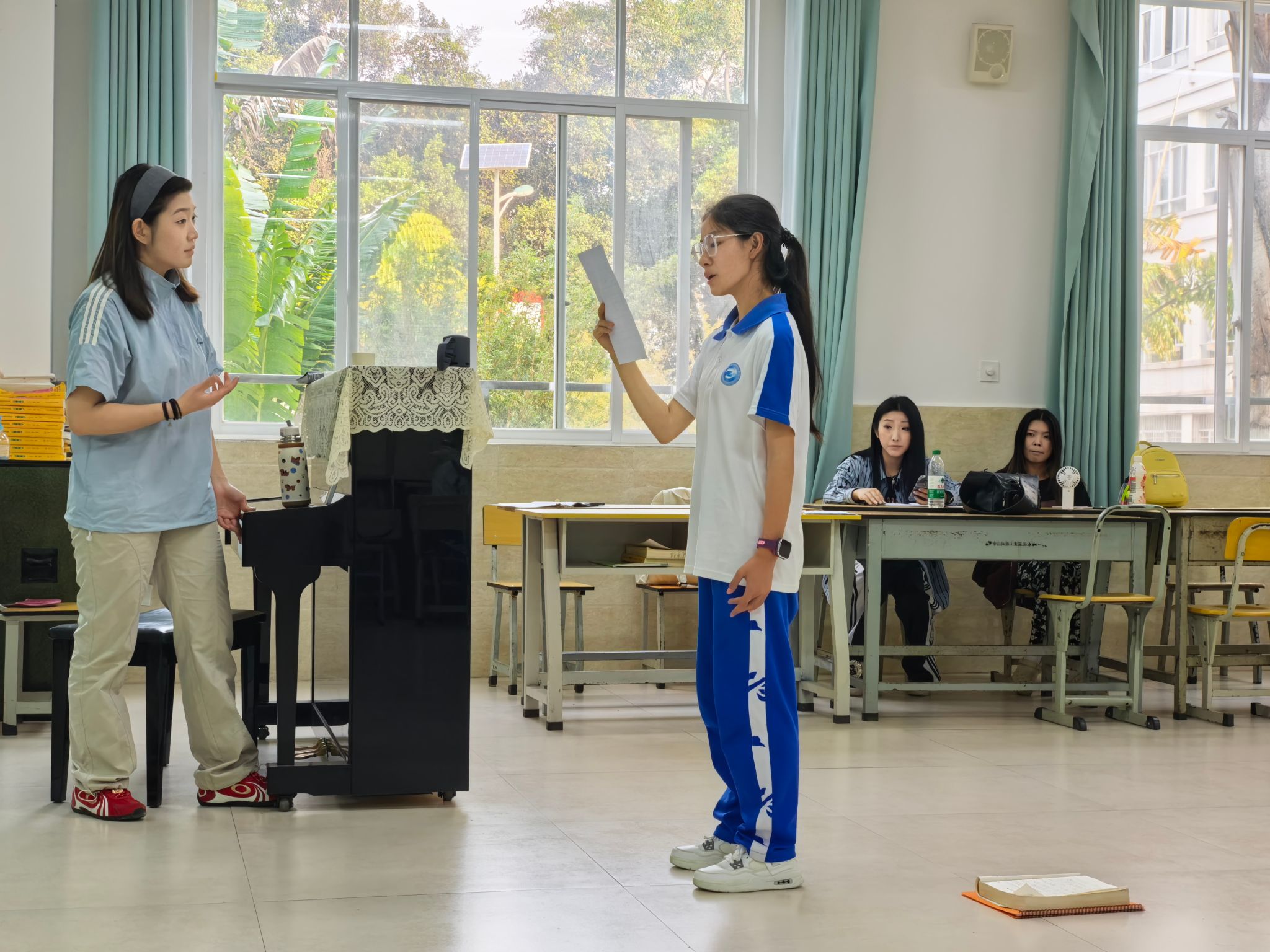 3月20日,我院驻红河县带队教师同支教学生前往红河一中开展巡回授课,并对支教学生的教学设计与教案撰写进行指导。刘泽慧对声乐学生进行《凤求凰》一对一辅导课。