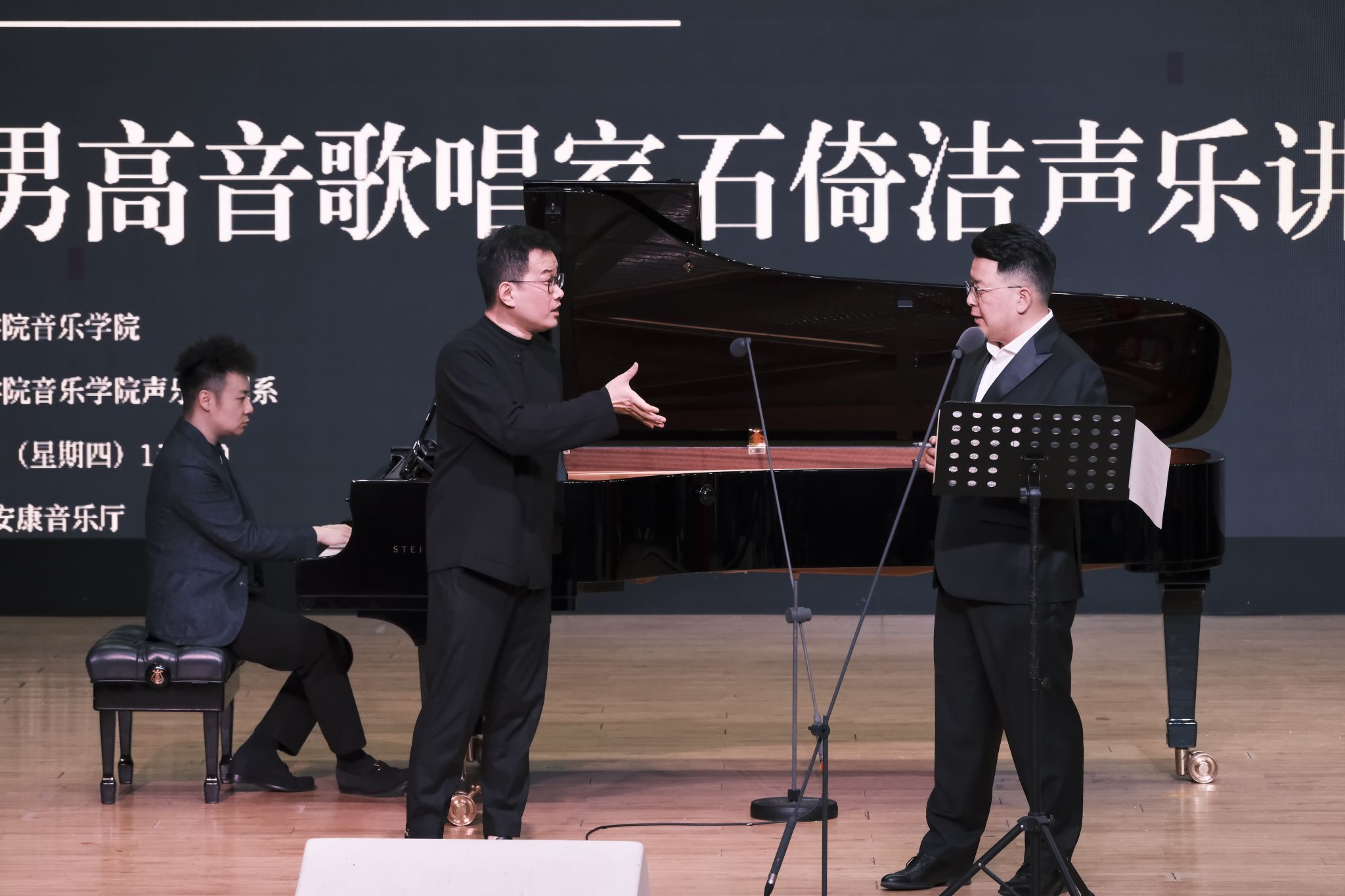 为了提升声乐教学水平,拓宽师生艺术视野,2025年4月17日下午,由音乐学院主办,声乐歌剧系承办的著名男高音歌唱家石倚洁“声乐演唱理论与实践”专题声乐讲座在安康音乐厅如期进行。音乐学院众多师生及省内外各高校的专家学者齐聚讲座现场,共同聆听、领略声乐艺术的魅力!