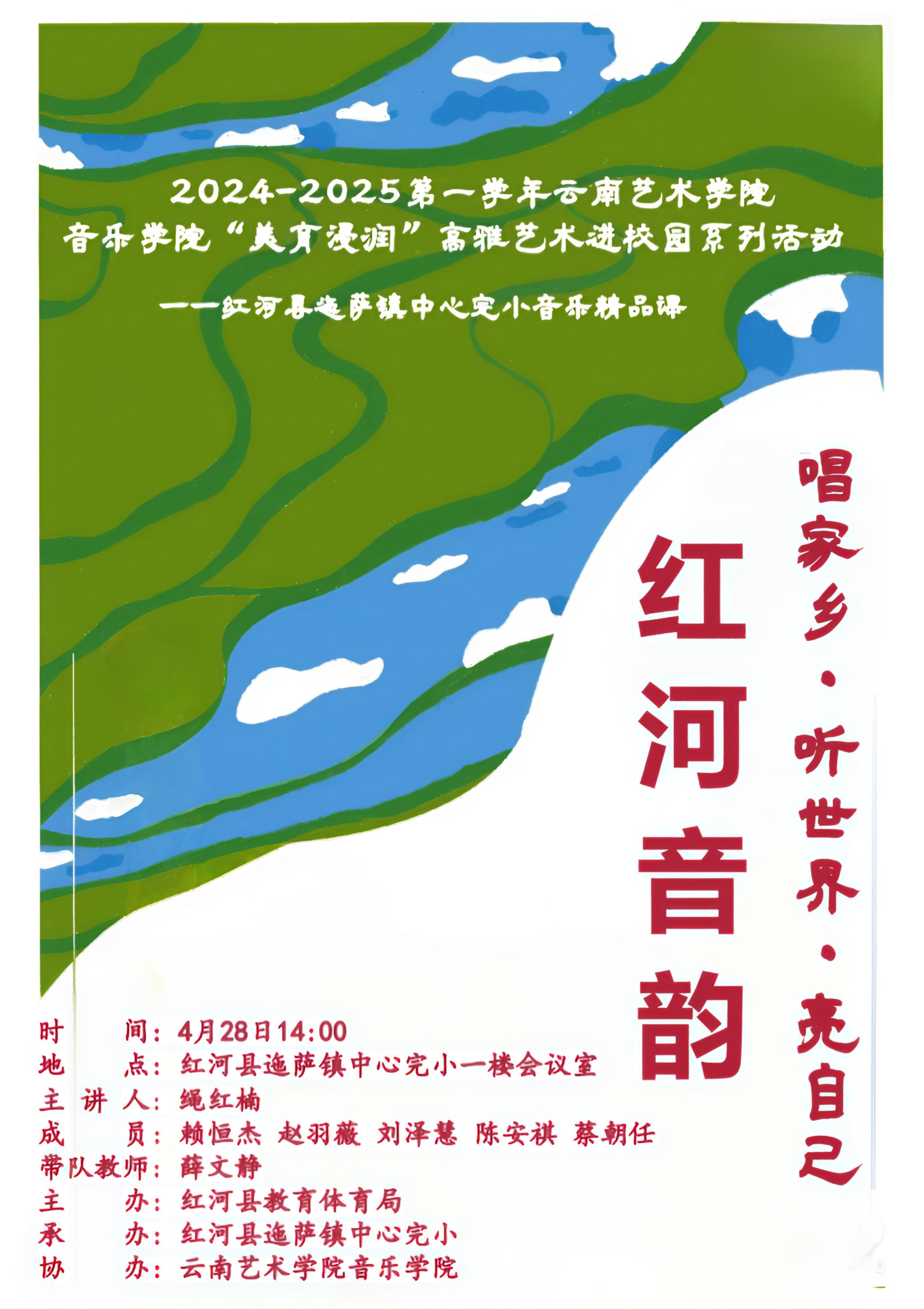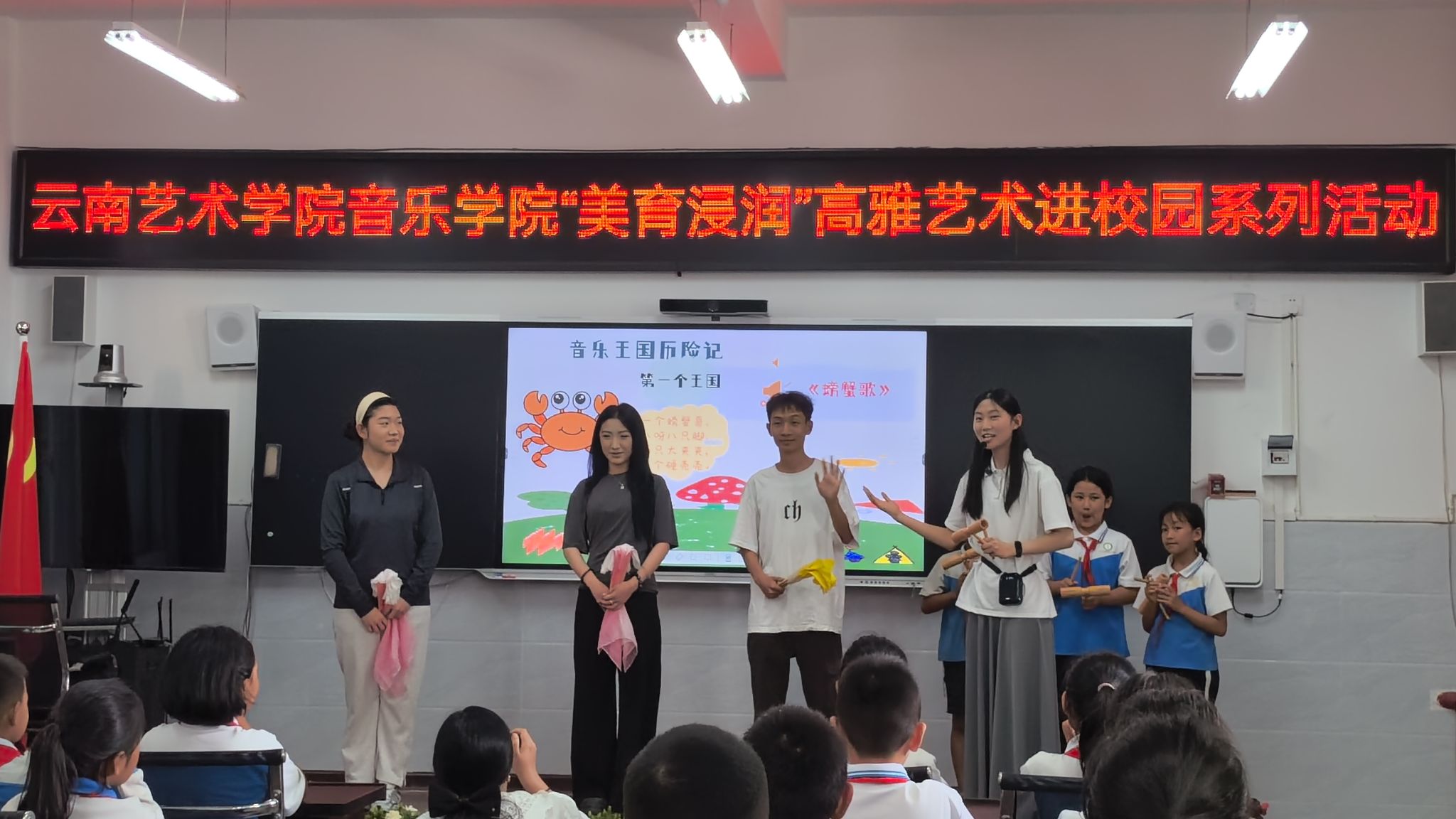为落实落细“美育浸润行动计划”,近日,william威廉英国官网音乐学院“美育浸润行动计划”驻红河县团队师生走进红河县迤萨镇中心完小,成功举办《红河音韵——唱家乡·听世界·亮自己》音乐精品公开课,以多样化艺术形式推进高雅艺术进校园系列活动。