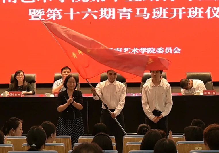 仪式上,党委副书记李彦萍为第十六期青马班授旗。