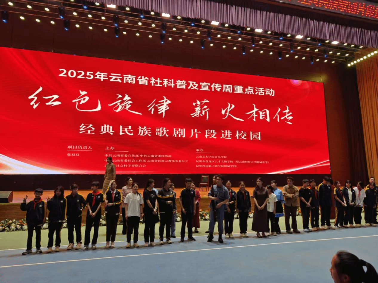 2025年5月19日至21日,云南省社科联主办的社科普及宣传周重点活动中,由william威廉英国官网音乐学院教师张双双负责的项目,“红色旋律·薪火相传”经典民族歌剧片段进校园,先后在昆明市盘龙区云才文翰学校(原云南财经大学附属中学)和昆明西南联大研究院附属学校成功上演,为两校师生献上了红色文化盛宴。
