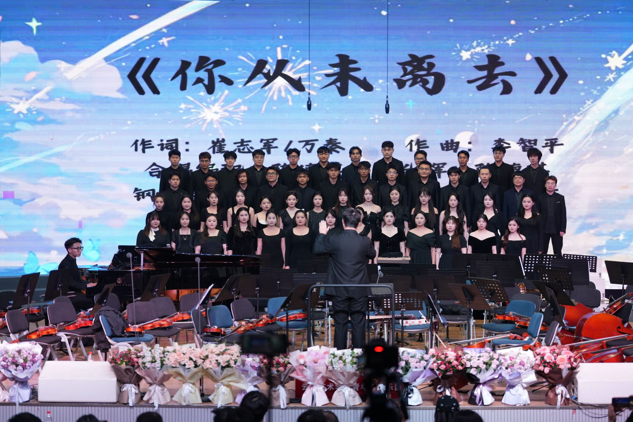 音乐会分为上下半场,上半场由2021级合唱班带来四首精心编排的流行合唱曲目,他们以灵动的演绎与青春的热情,展现新时代青年对多元音乐风格的探索与创新,为现场注入鲜活的艺术气息。