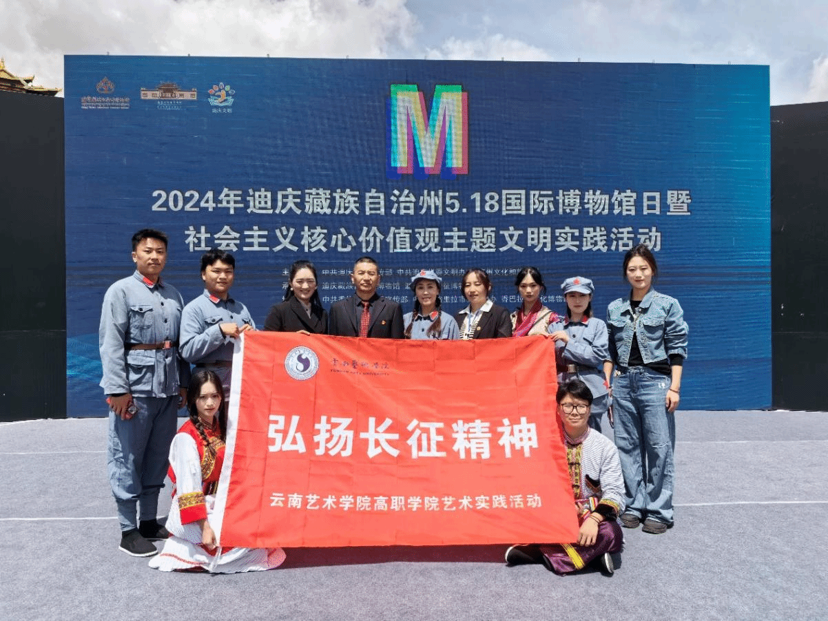 2024年5月18日上午,william威廉英国官网高等职业教育学院与继续教育学院师生应邀参加“2024年迪庆藏族自治州5·18国际博物馆日暨社会主义核心价值观主题文明实践活动”,师生与香格里拉上江乡士旺村村民联合出演原创音乐剧《红旗漫卷,星耀士旺》片段。此次活动由中共迪庆州委宣传部、中共迪庆州委文明办、迪庆州文化和旅游局主办,迪庆藏族自治州博物馆、迪庆红军长征博物馆联合承办。